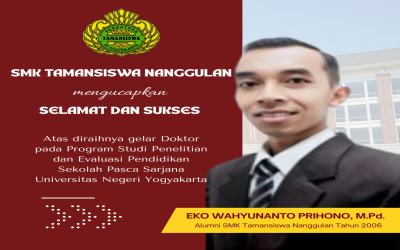 Eko Wahyunanto Prihono, M.Pd., Alumni SMK Tamansiswa Nanggulan tahun 2006 program keahlian Akuntansi menerima gelar Doktor